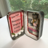 This is an art assemblage/collage on a metal tin similar in size to an altoid tin. I altered and hand inked, altered and painted original illustrations from both Alice in Wonderland and Through the Looking Glass. The images shown are one of a kind original adaptations. Personally designed papers, lace, inks, metal, playing cards all played a roll. Sweet little key on the front. All paint and inks are archival and the whole piece has been sealed in an archival varnish. I added an inspirational message because we all need to grab our own agency!