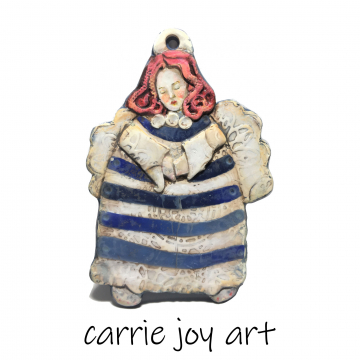 I hand formed the hanging pendant from clay. Piece is also adorned also with metal hinges and ribbons. Signed on the back.